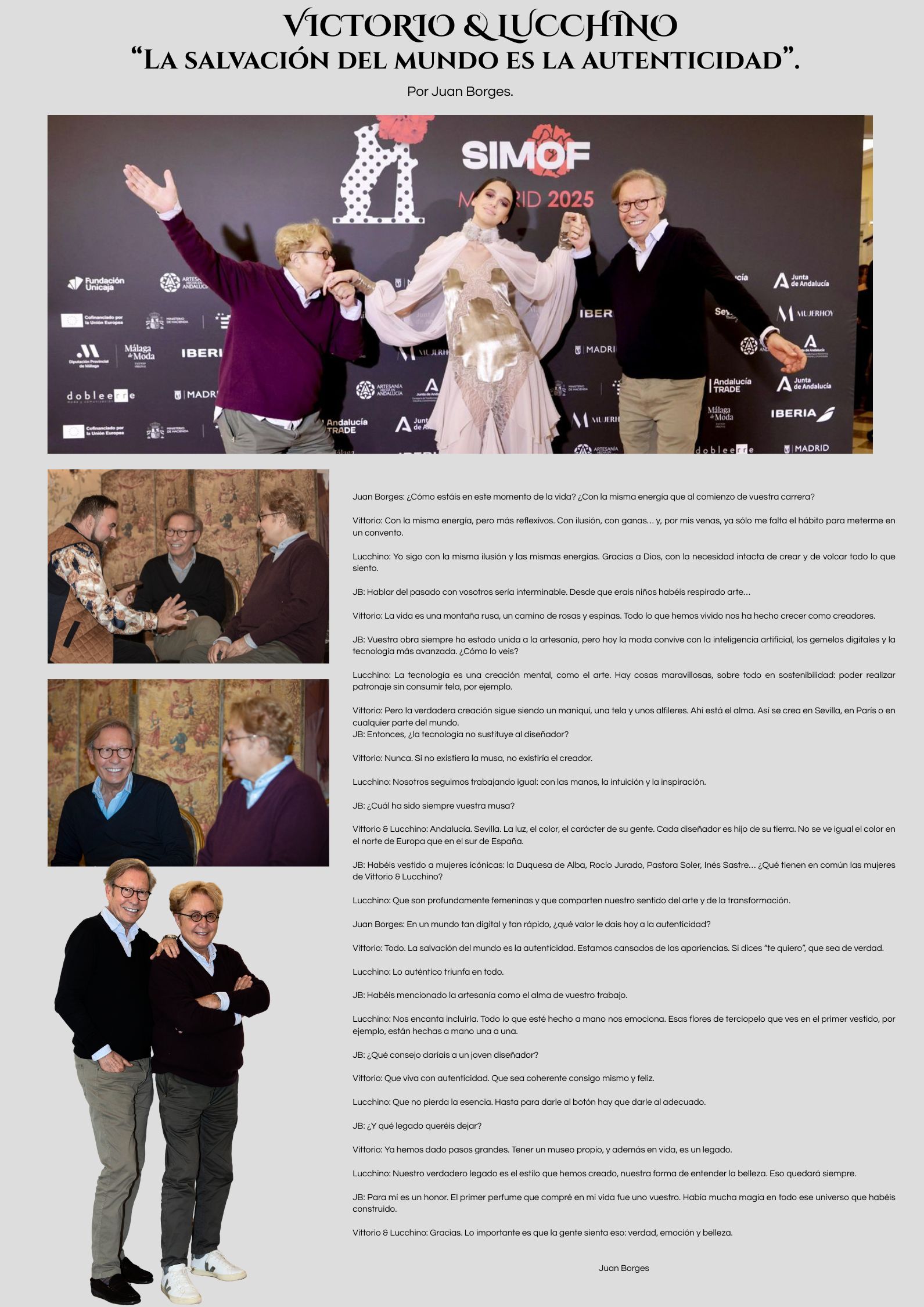Alta Costura Juan Borges MODA Moda, Arte y CulturaVictorio y Lucchino: La salvación del mundo es la autenticidadwebmasterActualizado el 4 febrero, 202619 diciembre, 2025 Compartir:
